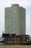 This structure contains 214 residential units and was constructed as public housing for the elderly.