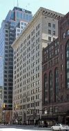 This building is one of the oldest on Public Square and considered to be Cleveland's first "skyscraper". In 1991, the building was incorporated into the design and construction of Key Tower. A light court was filled in with office floors, however the banking lobby's stained glass ceiling was preserved and is artificially illuminated. This building also features a decorative lamp on its southwest corner, representative of the first electrically illuminated streetlight.