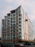 This residential building was built as the second phase of the Stonebridge mixed-use complex on the West Bank of the Flats. Its notable features include a glass and steel facade and curved accents on the roofline.