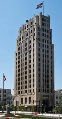 One of the region’s finest Art Deco buildings, Morris W. Schiebel designed this eighteen story skyscraper for the Central Savings and Loan in 1929. From the Egyptian-inspired entrance to the chevron patterned tiles at the top, this beautiful building is basically unaltered with the exception of the signage for First National Bank. It also boasts a gorgeous, lavish Art Deco lobby that also retains its integrity. The Metropolitan Savings and Loan (now Metropolitan Savings Bank) purchased the building in 1976 and renamed it Metropolitan Tower. The building is now known as First National Tower when First National acquired Metropolitan Bank.